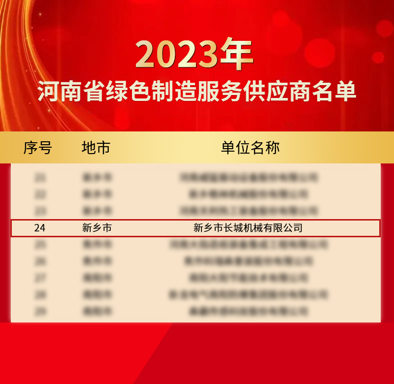 近期,河南省第一批綠色制造服務供應商評審結果進行公示,新鄉長城成功上榜!這是新鄉長城在綠色低碳發展領域獲得的又一殊榮。